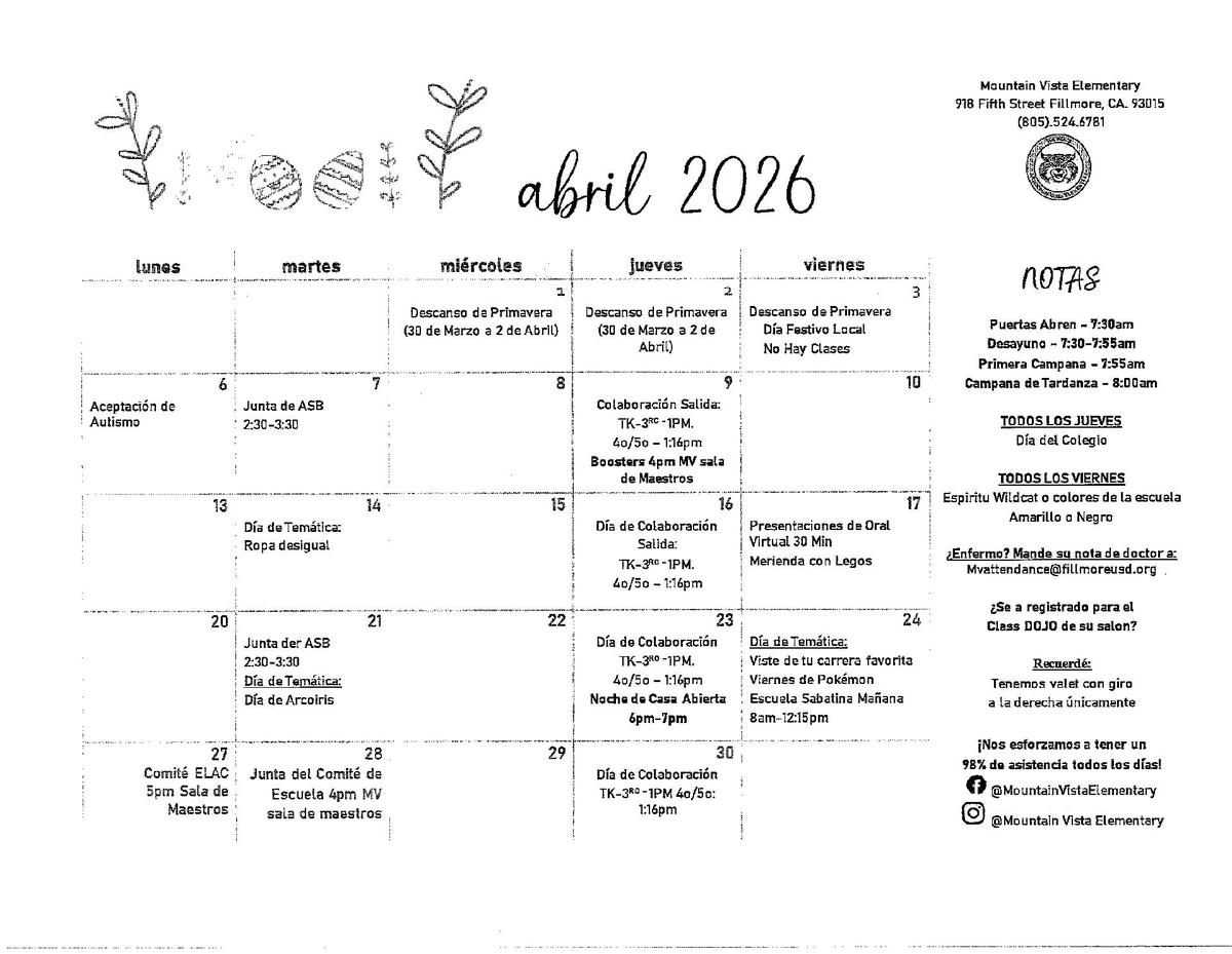 Annual Calendar 2025-26 School Year [English/Spanish]